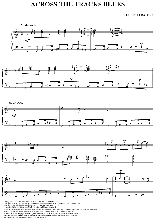"Across the Tracks Blues" Sheet Music by Duke Ellington