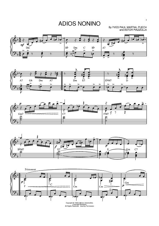Digital Sheet Music for Adios nonino by Astor Piazzolla, Yves Paul Martial Puech scored for Piano; id:388851