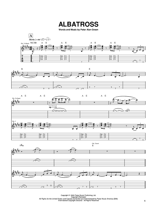 Digital Sheet Music for Albatross by Peter Green scored for Guitar Tab; id:370294