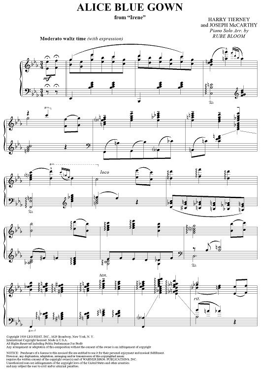 Digital Sheet Music for Alice Blue Gown by Harry Tierney, Rube Bloom, Joseph McCarthy scored for Piano Solo; id:355059