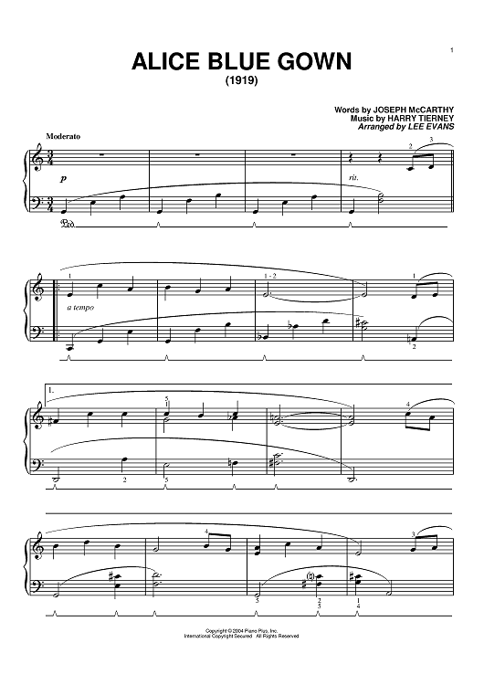 Digital Sheet Music for Alice Blue Gown by Debbie Reynolds, Harry Tierney, Joseph McCarthy, Edith Day, Anna Neagle scored for Piano; id:374392