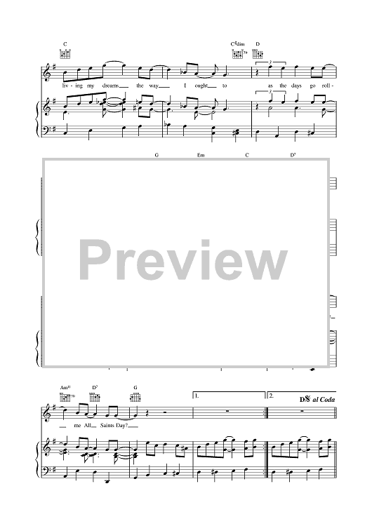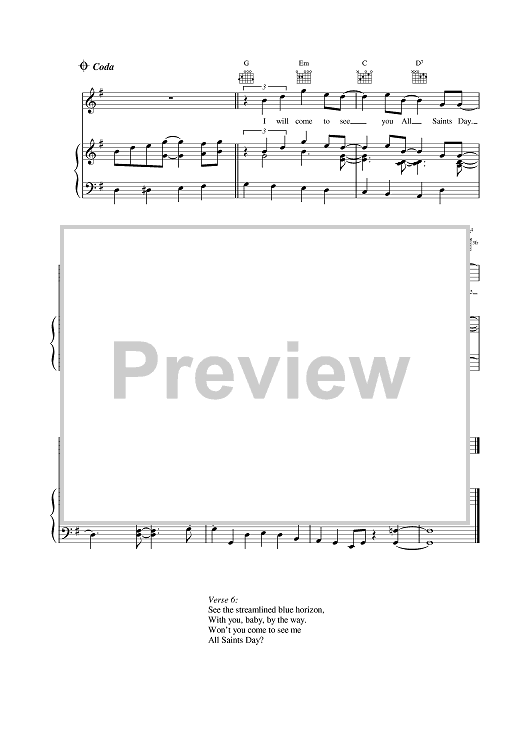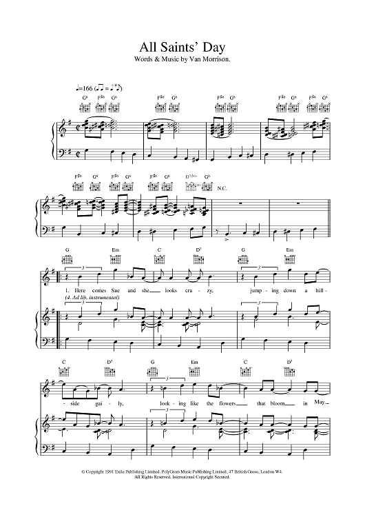 Digital Sheet Music for All Saint's Day by Van Morrison scored for Piano/Vocal/Chords; id:379770