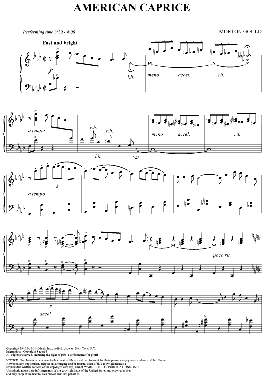 Digital Sheet Music for American Caprice by Morton Gould scored for Piano Solo; id:320898