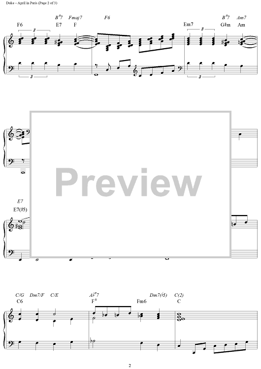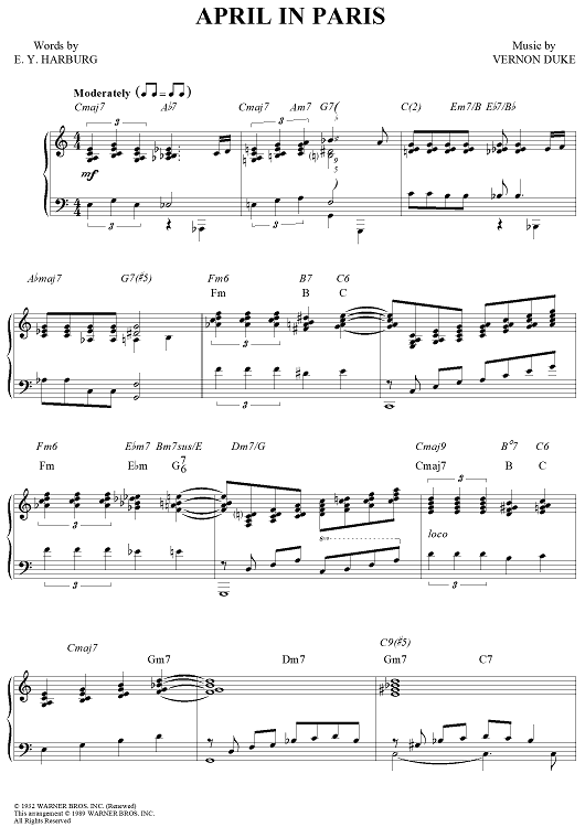 Digital Sheet Music for April in Paris by Count Basie, E.Y. "Yip" Harburg, Vernon Duke scored for Piano Solo; id:289142