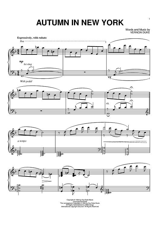 Digital Sheet Music for Autumn In New York by Vernon Duke, Jo Stafford, Bud Powell scored for Piano; id:392319