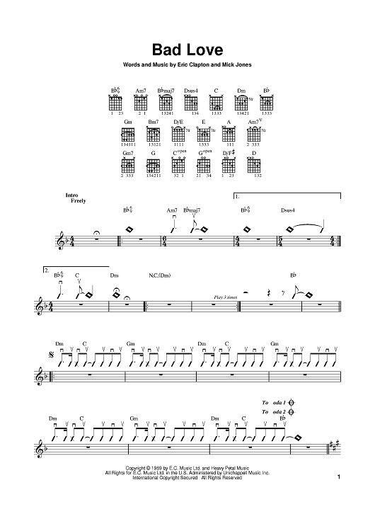 Digital Sheet Music for Bad Love by Eric Clapton, Mick Jones scored for Lead Sheet with Guitar Grids; id:371780