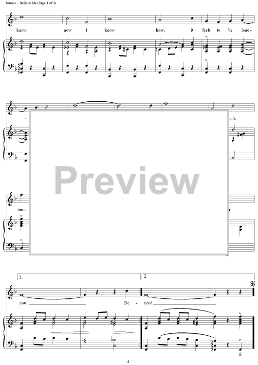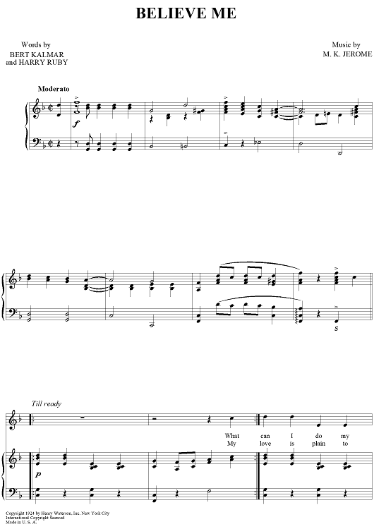 Digital Sheet Music for Believe Me by Bert Kalmar, Harry Ruby, M. K. Jerome scored for Piano/Vocal; id:418473
