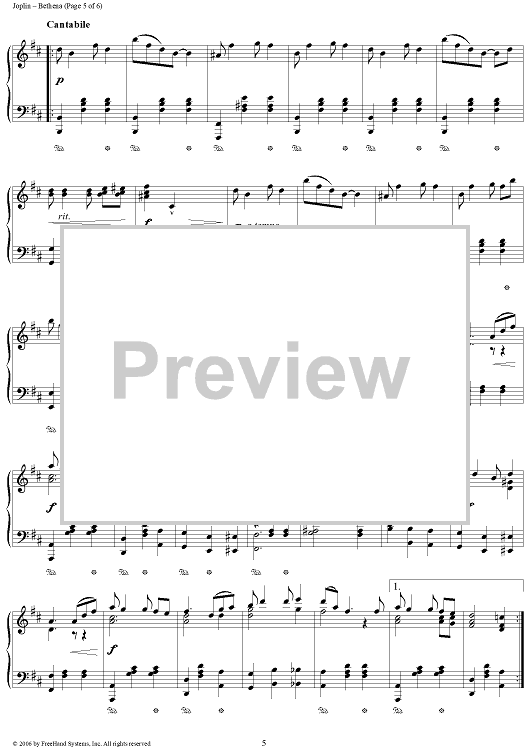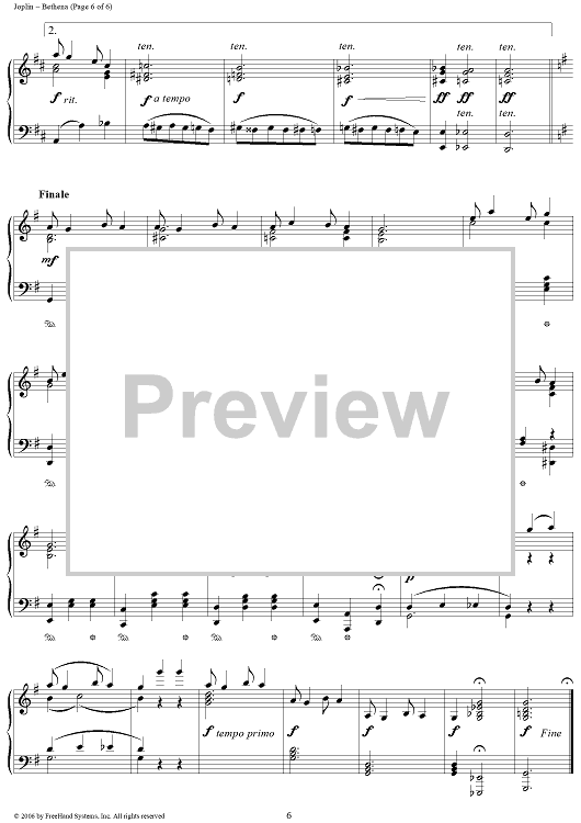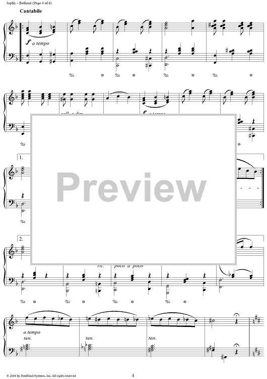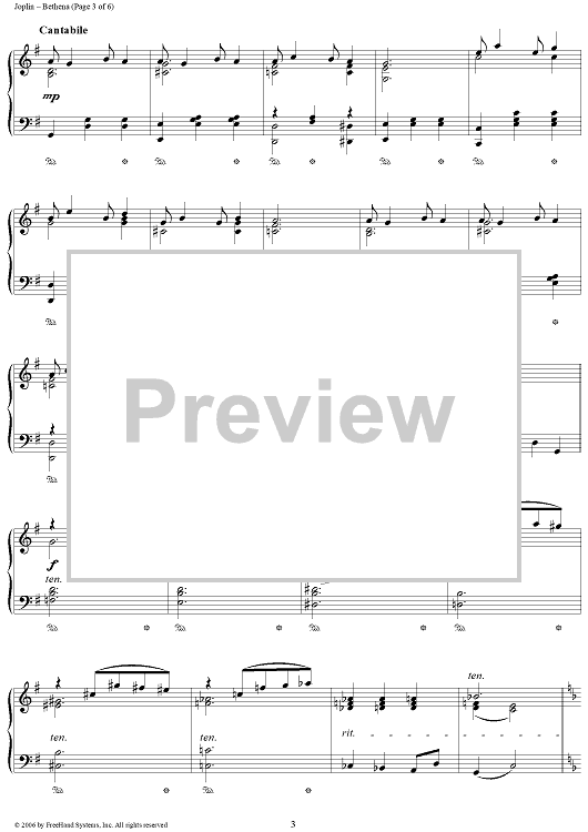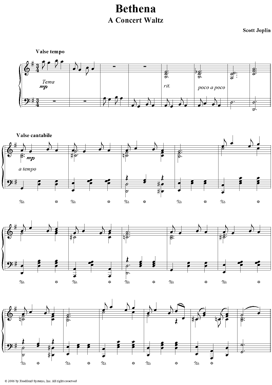 Digital Sheet Music for Bethena by Scott Joplin scored for Piano Solo; id:249666