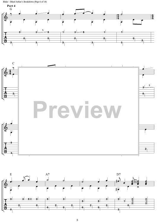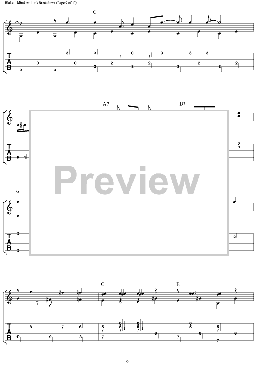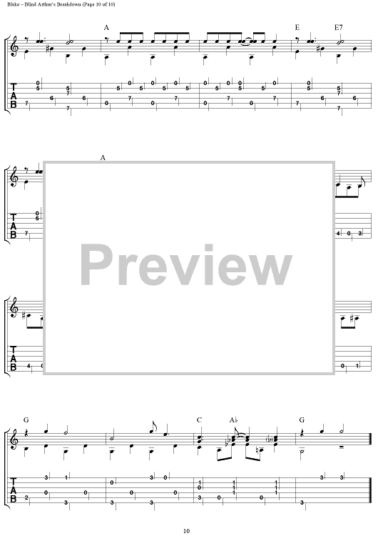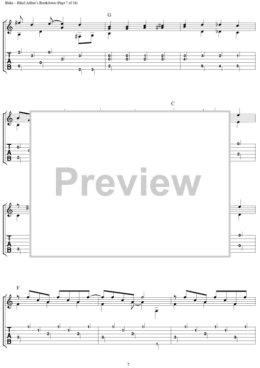 "Blind Arthur's Breakdown" Sheet Music by Blind Blake