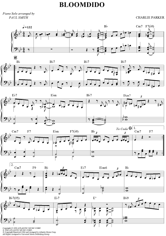Digital Sheet Music for Bloomdido by Charlie Parker, Paul Smith scored for Piano Solo; id:442079