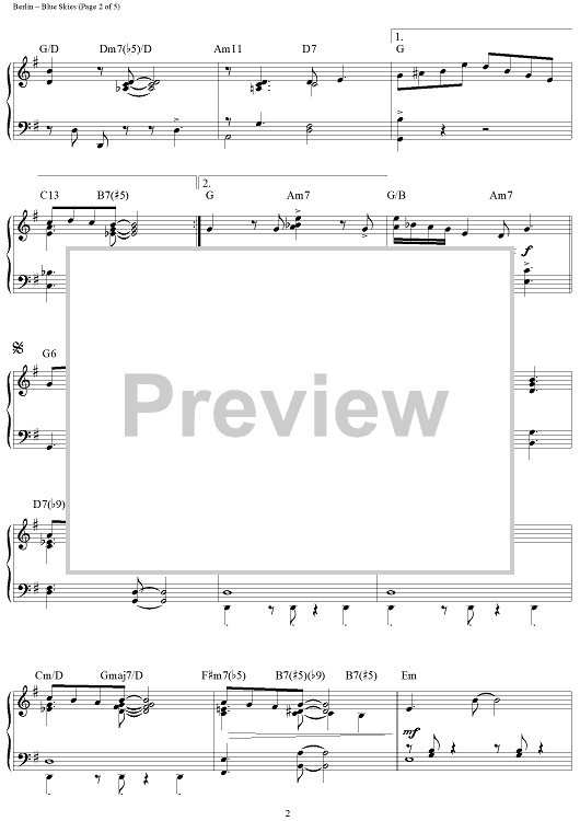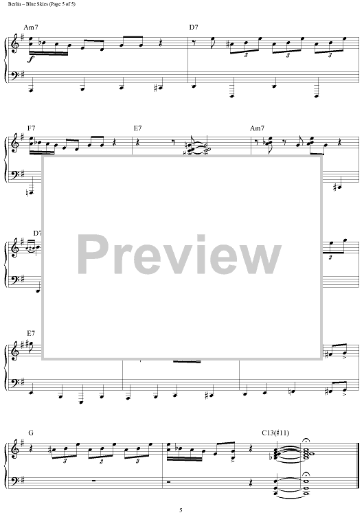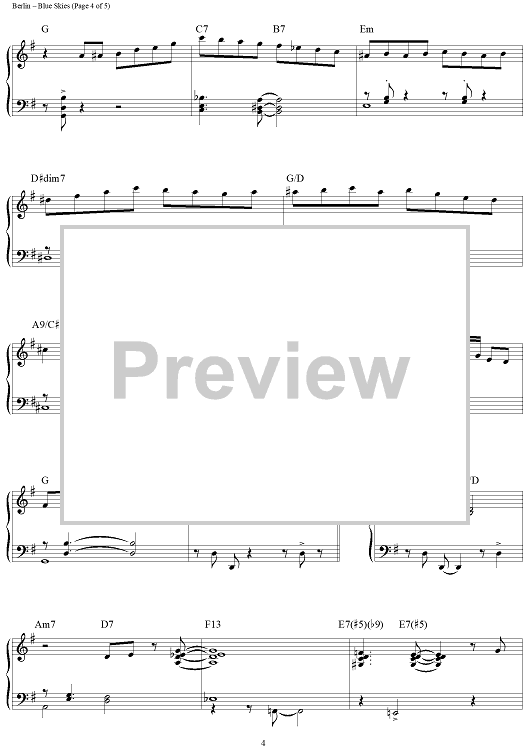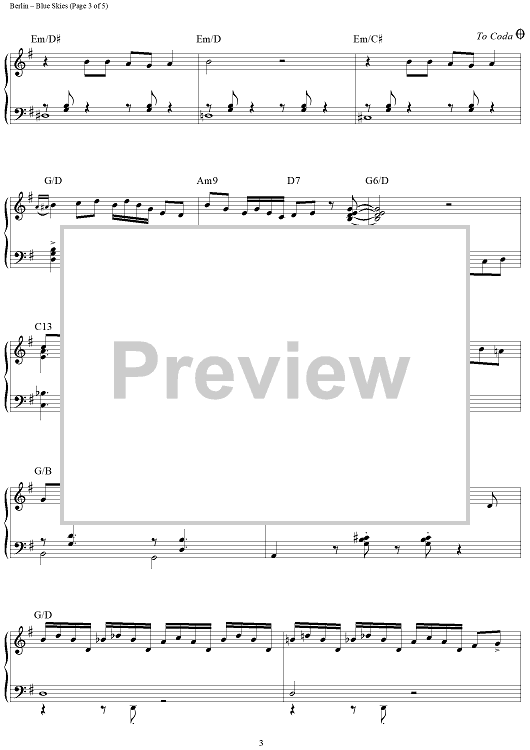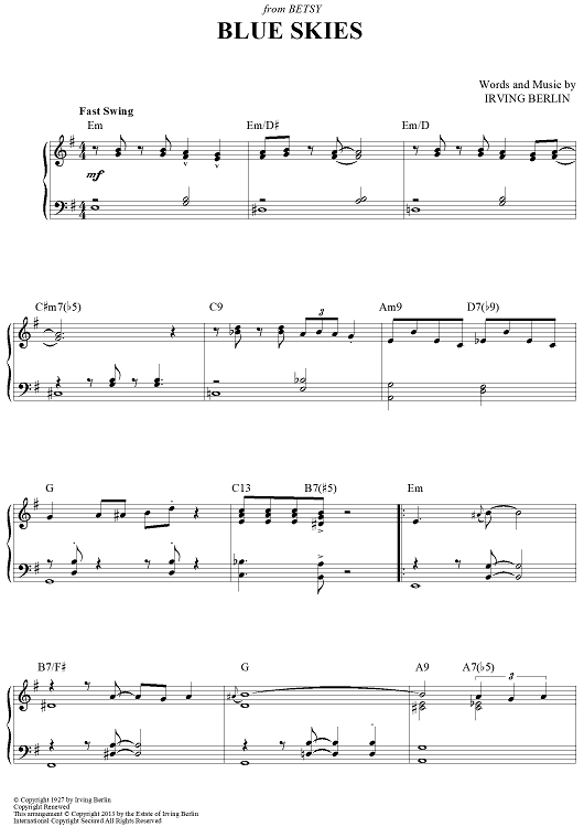 Digital Sheet Music for Blue Skies by Irving Berlin, Brent Edstrom scored for Piano Solo; id:458553