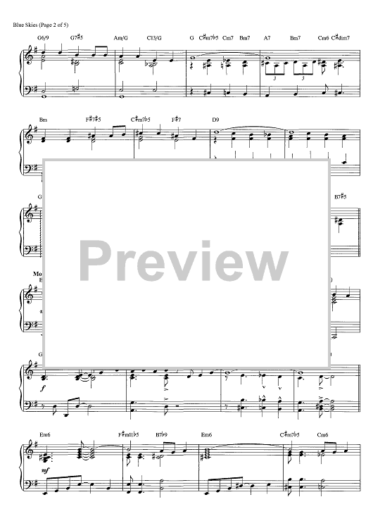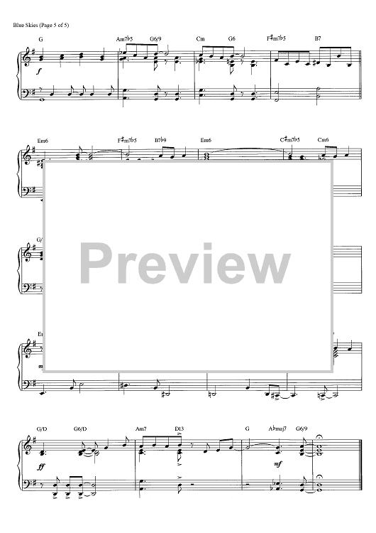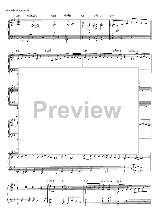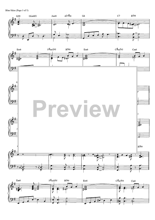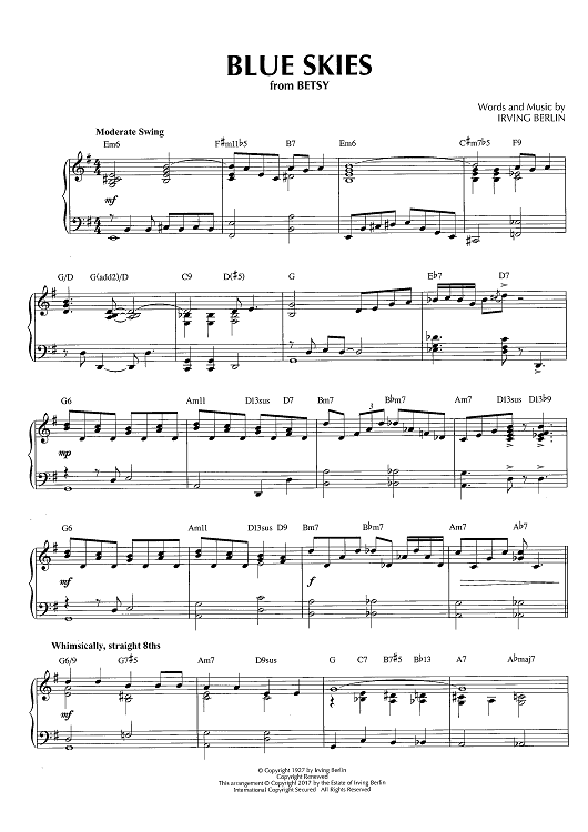 Digital Sheet Music for Blue Skies by George Gershwin, Brent Edstrom scored for Piano Solo; id:466002