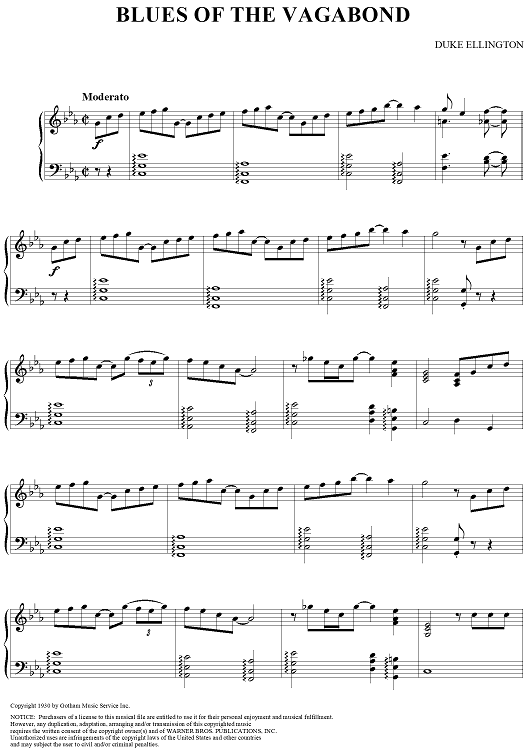 "Blues of the Vagabond" Sheet Music by Duke Ellington