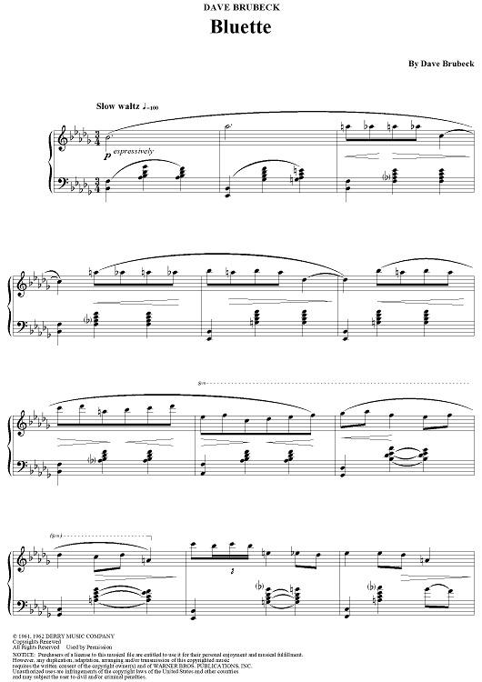 Digital Sheet Music for Bluette by Dave Brubeck scored for Piano Solo; id:109897