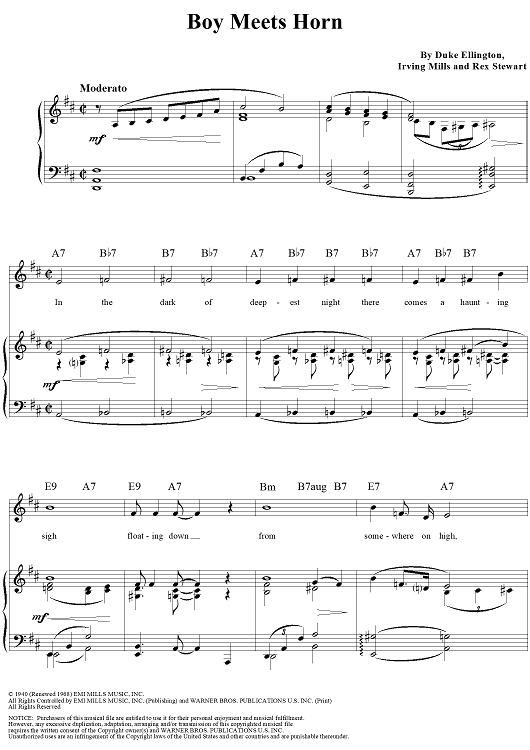 Digital Sheet Music for Boy Meets Horn by Duke Ellington, Irving Mills, Rex Stewart scored for Piano/Vocal/Chords; id:110051