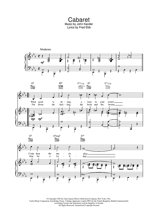 Digital Sheet Music for Cabaret by John Kander, Louis Armstrong, Fred Ebb scored for Piano/Vocal/Chords; id:378965