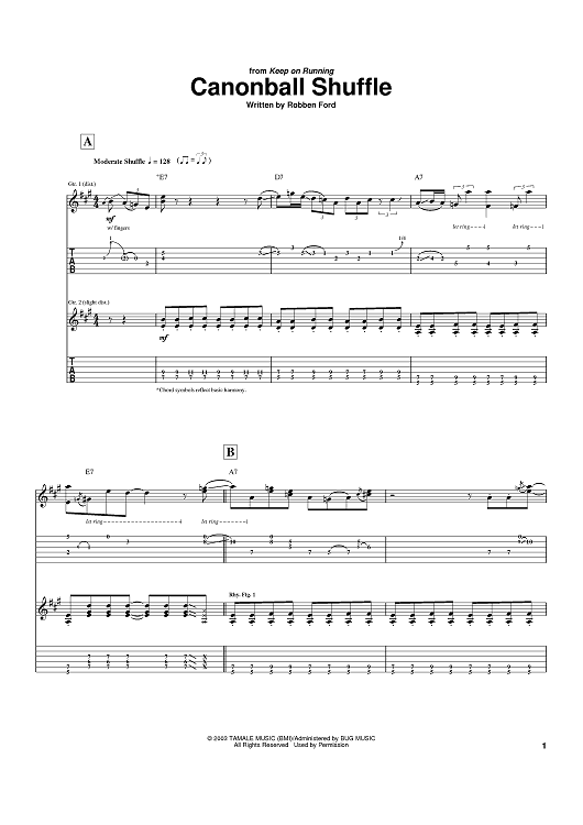 Digital Sheet Music for Cannonball Shuffle by Robben Ford scored for Guitar Tab; id:390550