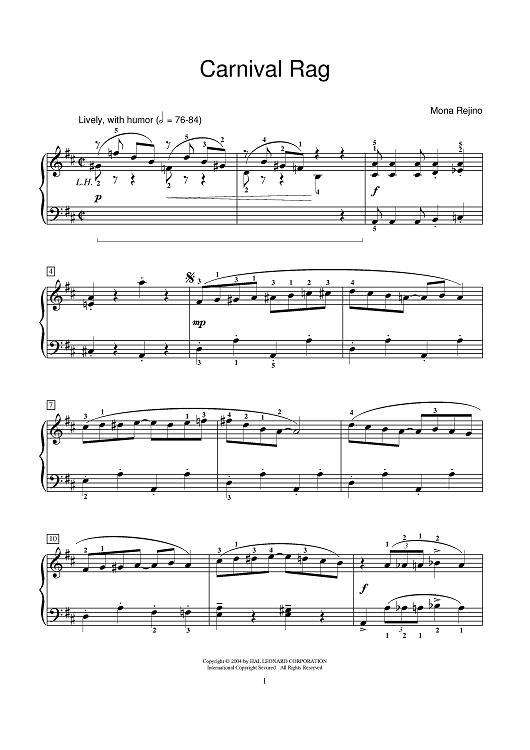 Digital Sheet Music for Carnival Rag by Mona Rejino scored for Piano; id:374471