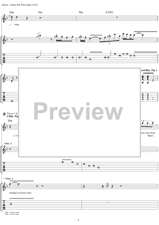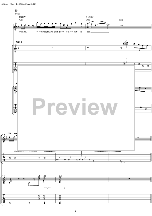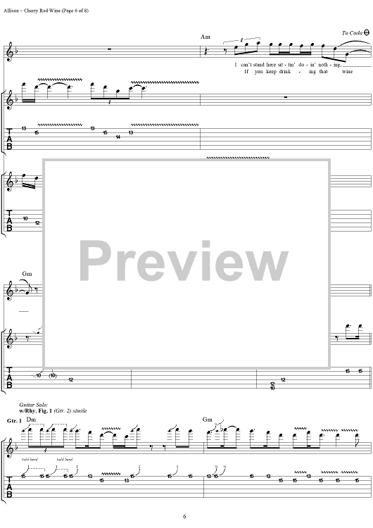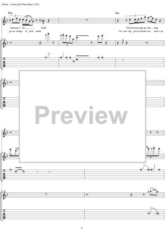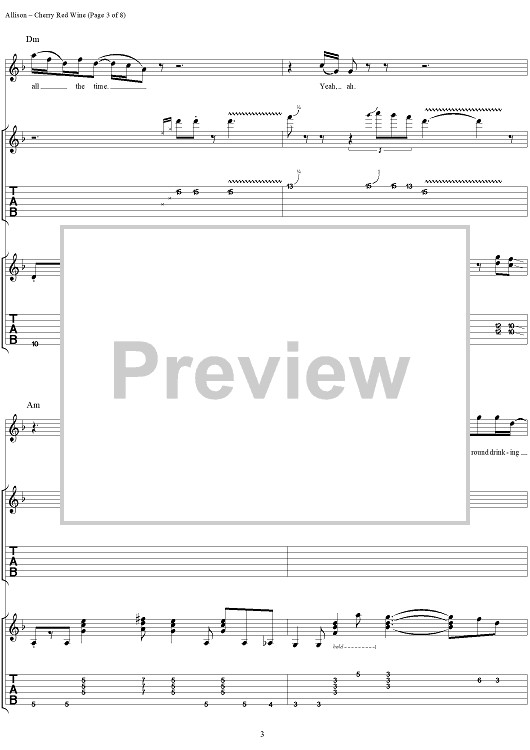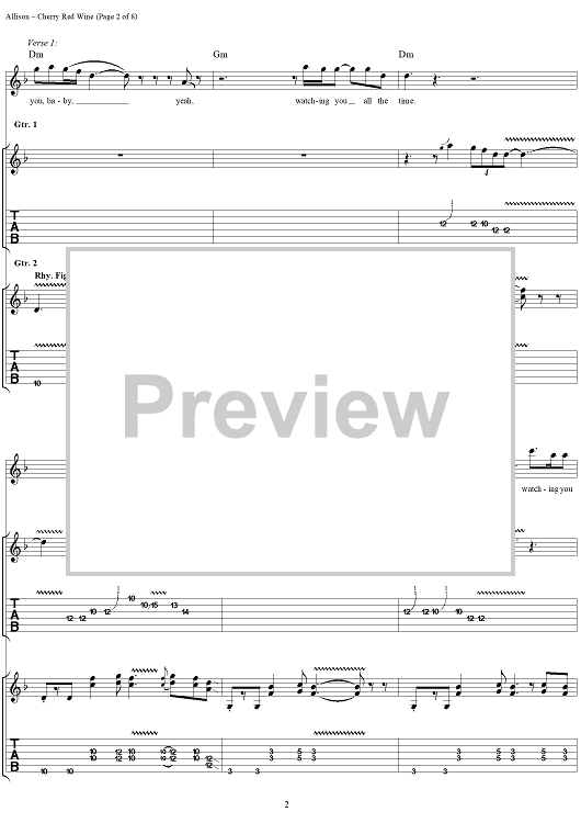 Digital Sheet Music for Cherry Red Wine by Luther S. Allison, Jonny Lang scored for Guitar Tab/Vocal; id:277702