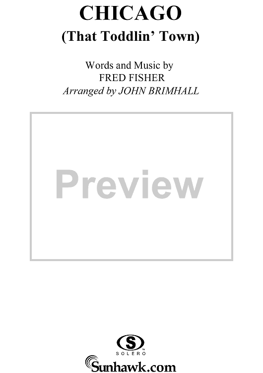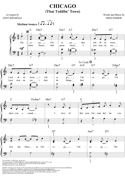 Digital Sheet Music for Chicago (That Toddlin' Town) by Fred Fisher, John Brimhall scored for Easy Piano/Vocal; id:236783
