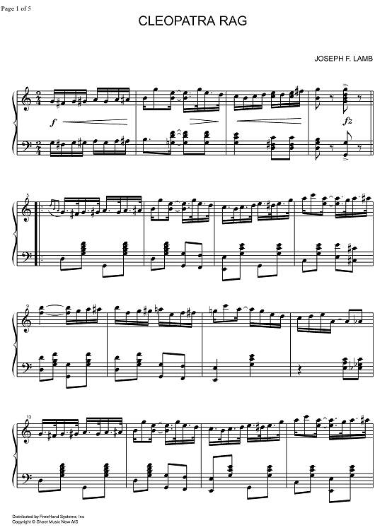 Digital Sheet Music for Cleopatra Rag by Joseph F. Lamb scored for Piano Solo; id:327558