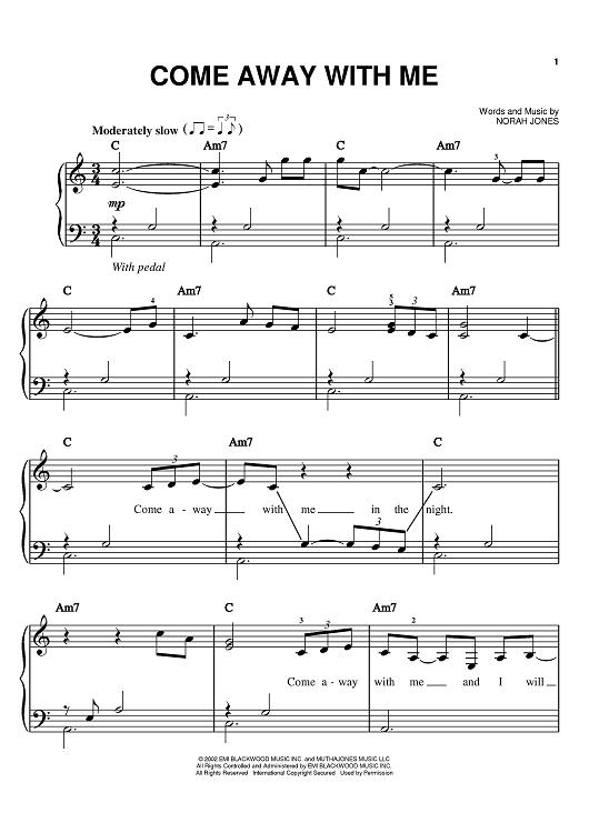 Digital Sheet Music for Come Away With Me by Norah Jones scored for Easy Piano; id:371214