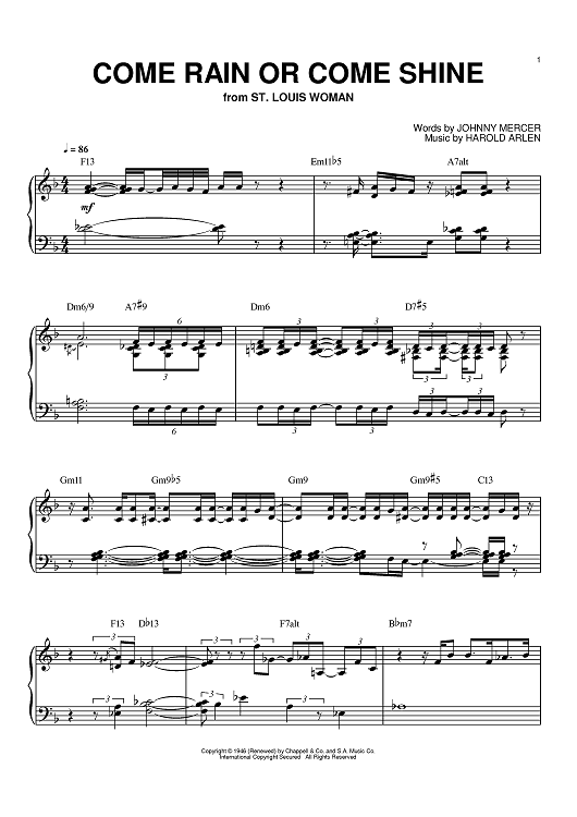 Digital Sheet Music for Come Rain Or Come Shine by Harold Arlen, Johnny Mercer, Bill Evans scored for Piano; id:382040