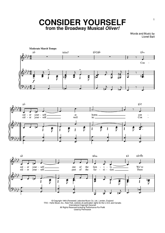 Digital Sheet Music for Consider Yourself by Judy Garland, Lionel Bart, Michael Goodman scored for Piano/Vocal/Chords; id:386717