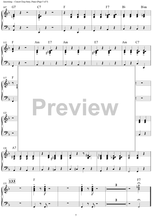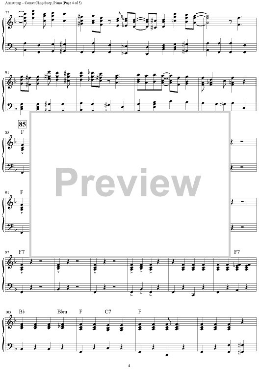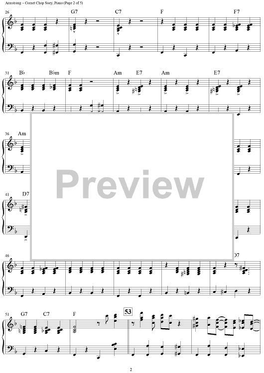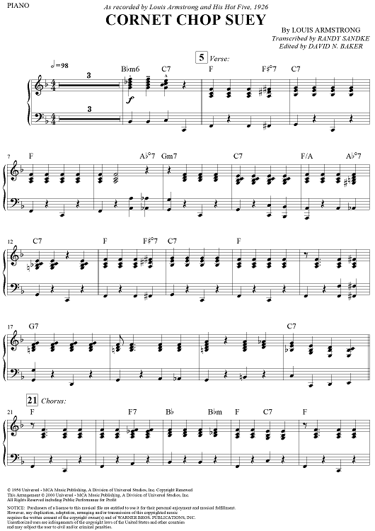 Digital Sheet Music for Cornet Chop Suey - Piano by , Louis Armstrong, Louis Armstrong and His Hot Five scored for Jazz Ensemble; id:308479