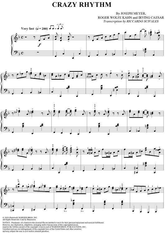 Digital Sheet Music for Crazy Rhythm by Irving Caesar, Joseph Meyer, Roger Wolfe Kahn, Riccardo Scivales, Cliff Jackson scored for Piano Solo; id:241880