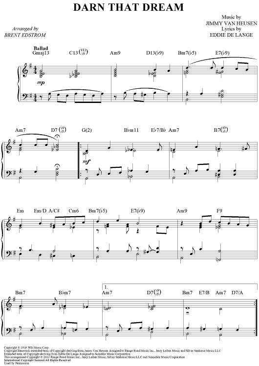 Digital Sheet Music for Darn That Dream by Jimmy Van Heusen, Brent Edstrom, Eddie De Lange scored for Piano Solo; id:464334