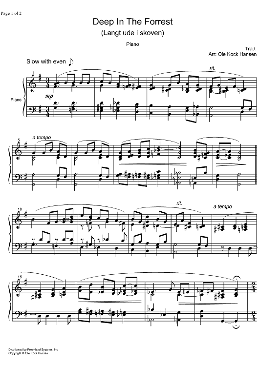 Digital Sheet Music for Deep in the Forest by , Ole Kock Hansen, Traditional scored for Piano Solo; id:325190