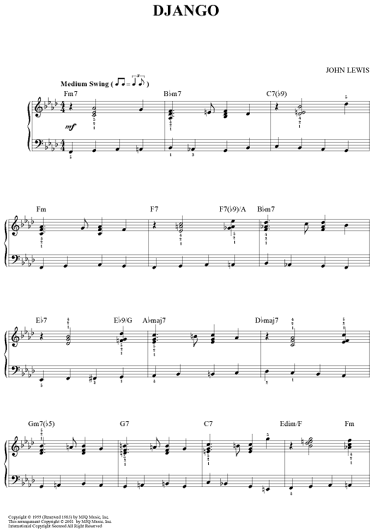 Digital Sheet Music for Django by John Lewis, Brent Edstrom scored for Piano Solo; id:464379