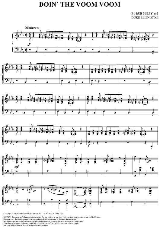 Digital Sheet Music for Doin' the Voom Voom by Duke Ellington, Bub Miley scored for Piano Solo; id:270475