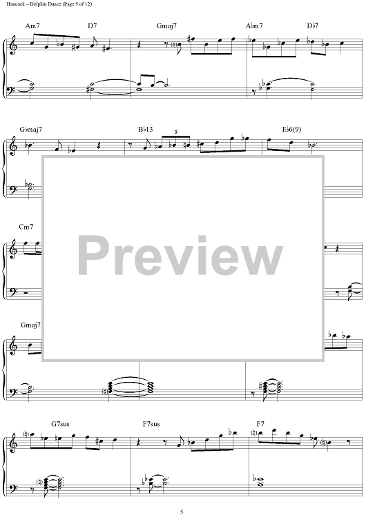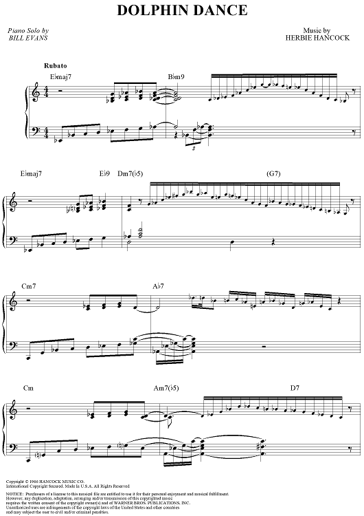 Digital Sheet Music for Dolphin Dance by Bill Evans, Herbie Hancock scored for Piano Solo; id:241929
