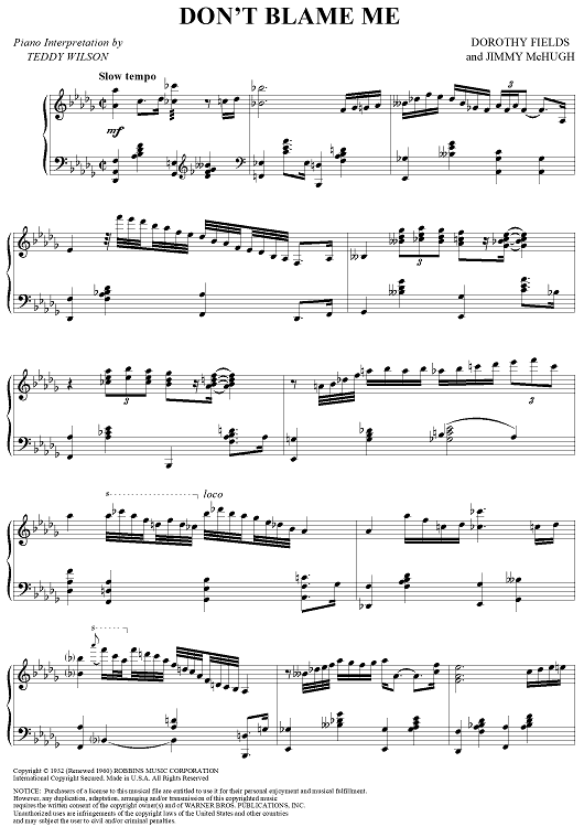 Digital Sheet Music for Don't Blame Me by Teddy Wilson, Dorothy Fields, Jimmy McHugh scored for Piano Solo; id:315907