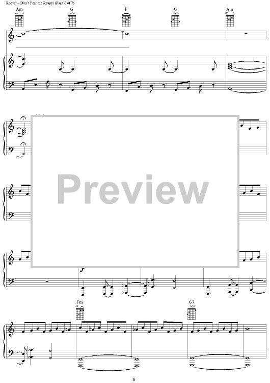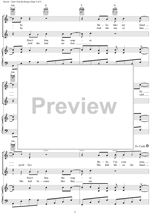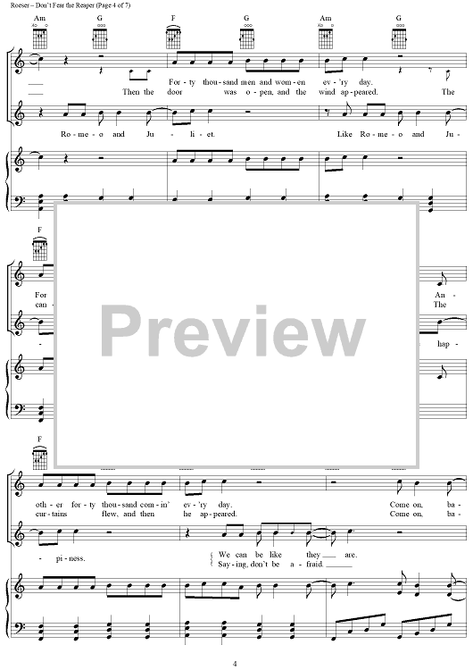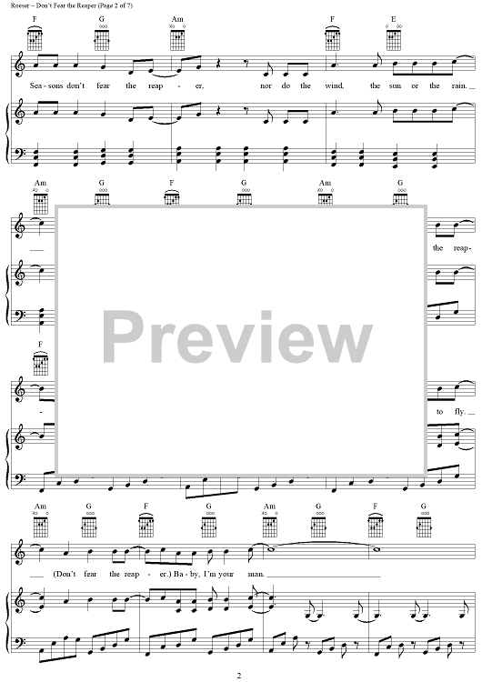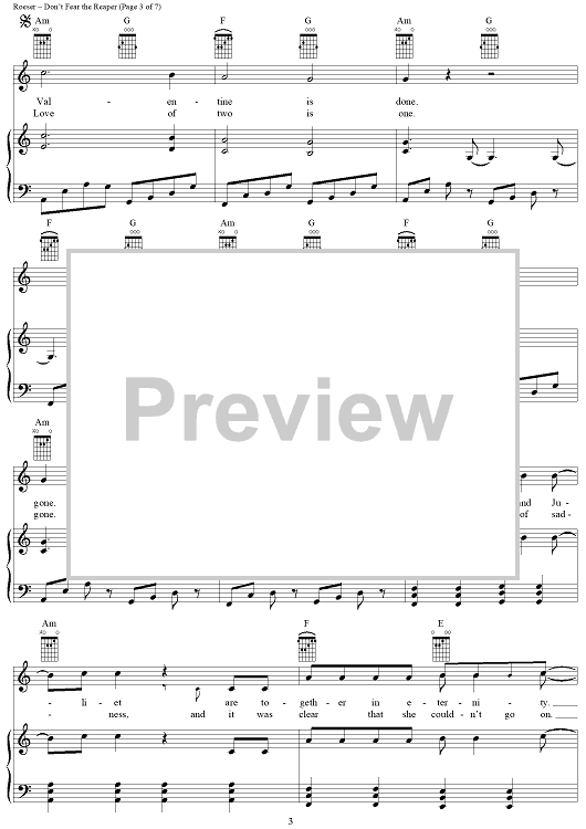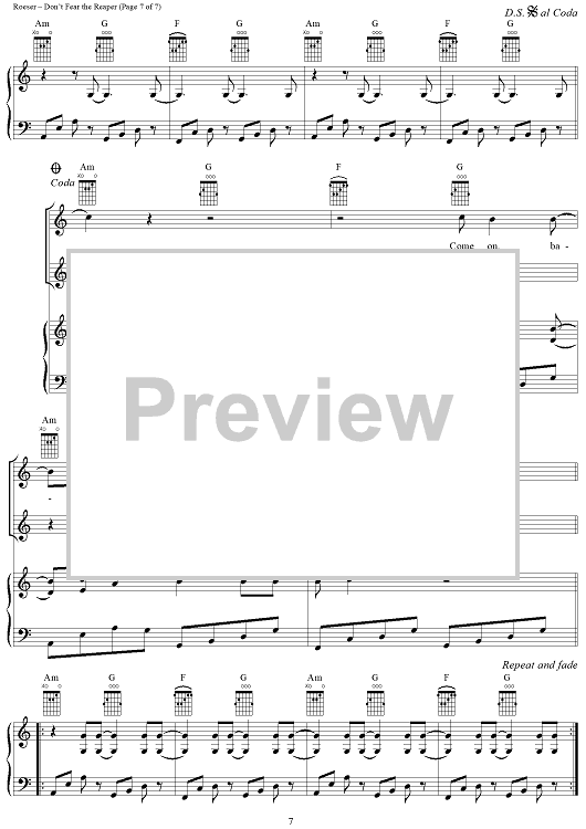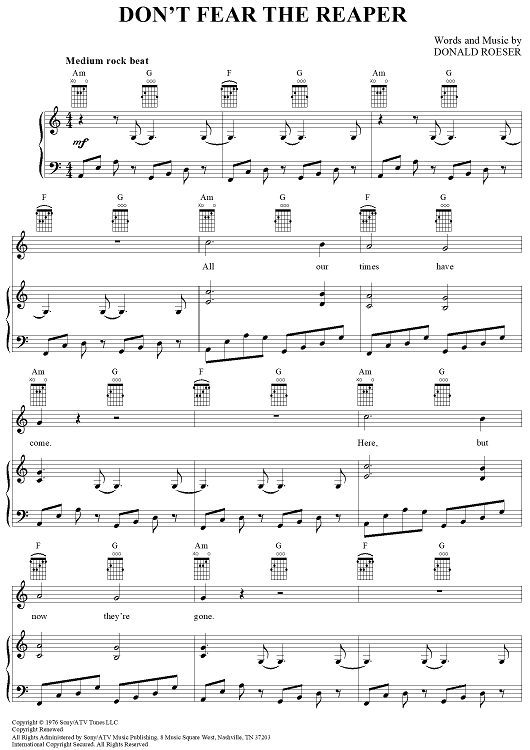Digital Sheet Music for Don't Fear The Reaper by Blue Öyster Cult, Buck Dharma scored for Piano/Vocal/Chords; id:367776