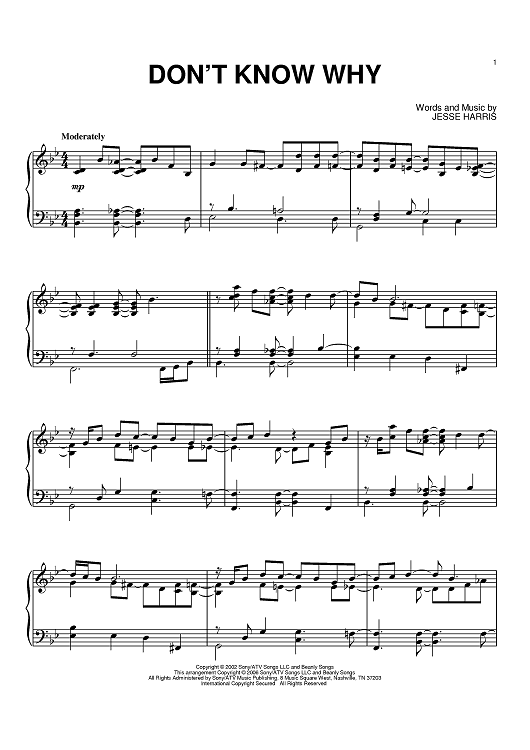 Digital Sheet Music for Don't Know Why by Jesse Harris, Norah Jones scored for Piano; id:390893