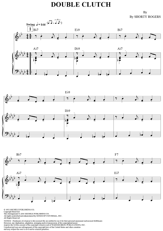 Digital Sheet Music for Double Clutch by Shorty Rogers scored for Trumpet/Piano; id:309845