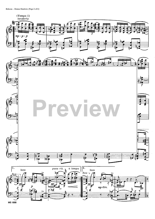 Digital Sheet Music for Dream Shadows - from "Three Ghost Rags" by William Bolcom scored for Piano Solo; id:438114