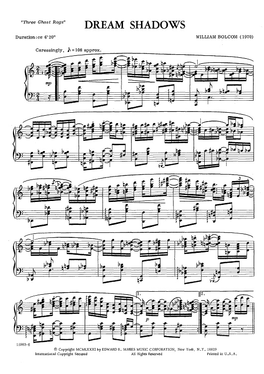 "Dream Shadows - from "Three Ghost Rags"" Sheet Music by William Bolcom