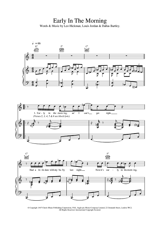 Digital Sheet Music for Early In The Morning by Van Morrison scored for Piano/Vocal/Chords; id:376258