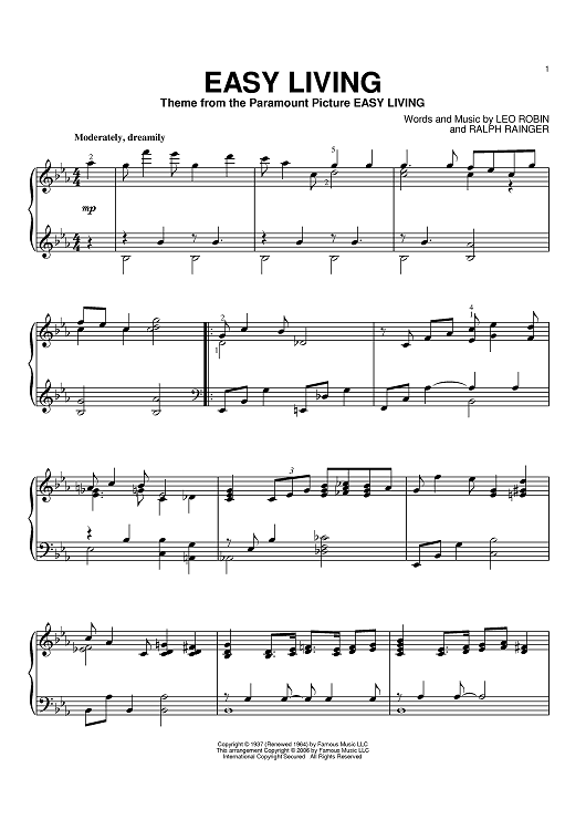 Digital Sheet Music for Easy Living by Billie Holiday, Leo Robin, Ralph Rainger scored for Piano; id:392316