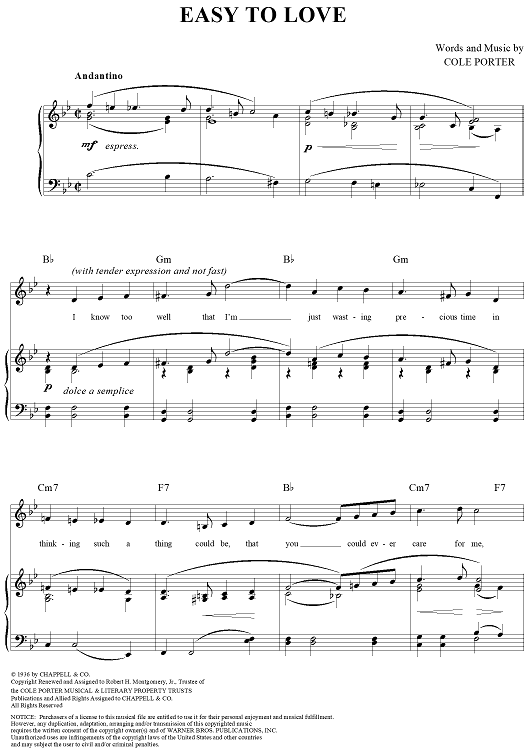 Digital Sheet Music for Easy to Love by Mort Dixon, Cole Porter scored for Piano/Vocal; id:289233