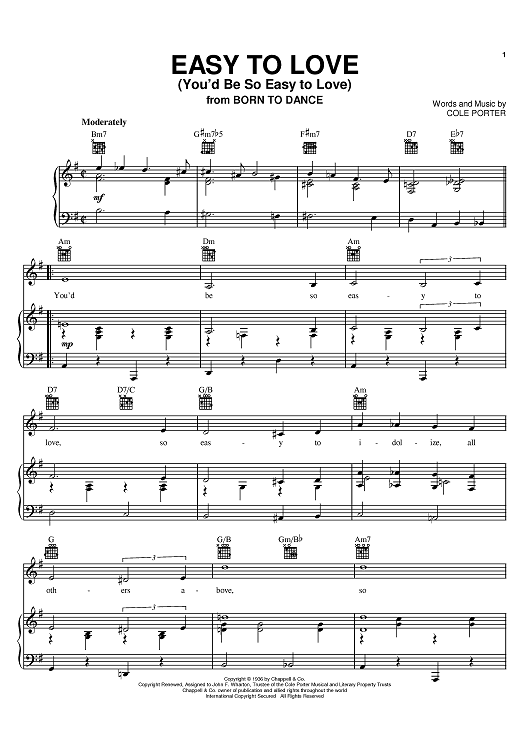 Digital Sheet Music for Easy To Love (You'd Be So Easy To Love) by Cole Porter scored for Piano/Vocal/Chords; id:368044