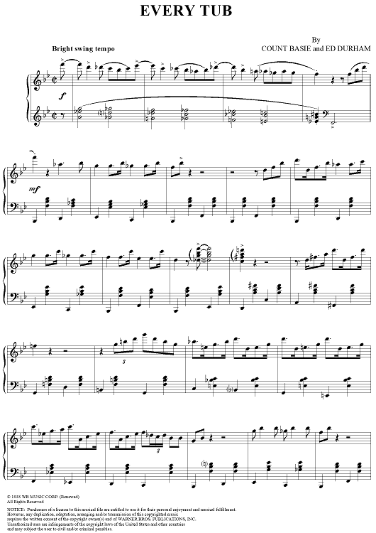 Digital Sheet Music for Every Tub by Count Basie, Eddie Durham scored for Piano Solo; id:276524
