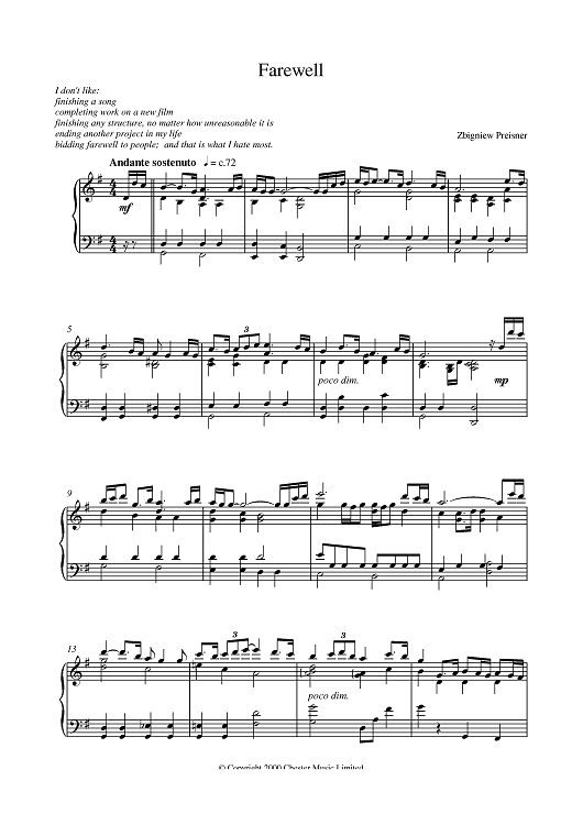 "Farewell" Sheet Music by Zbigniew Preisner