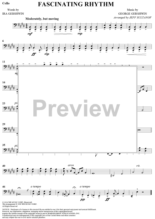 "Fascinating Rhythm - Cello" Sheet Music by George Gershwin