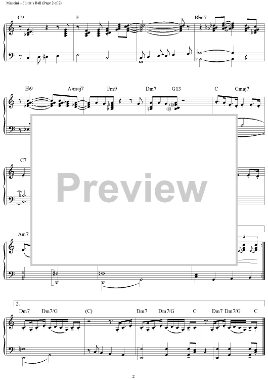 Digital Sheet Music for Fluter's Ball by Henry Mancini scored for Piano Solo; id:251431