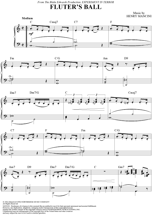 "Fluter's Ball" Sheet Music by Henry Mancini